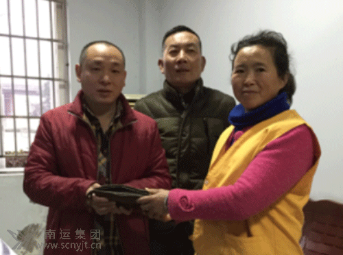 南充汽車客運(yùn)站清潔公司保潔員楊秀群(右)將旅客遺失的手包歸還失主