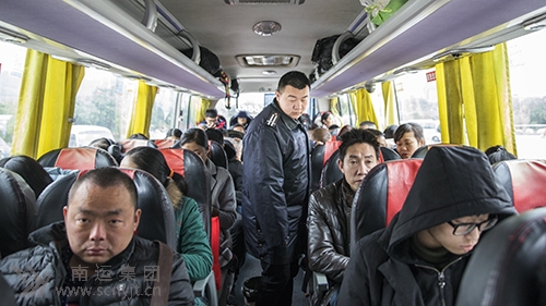 2月21日,戊戌年正月初六,是春節(jié)小長假的最后一天,陰間多云,春寒風(fēng)微。南充汽車客運(yùn)站候車大廳外的玻璃上張貼著省運(yùn)管局印制的“平安春運(yùn) 回家過年”的宣傳畫,“營造平安春運(yùn)、溫馨春運(yùn)、誠信春運(yùn)、便捷春運(yùn)”的紅底白字橫幅特別醒目,歡度佳節(jié)的6個(gè)大紅燈籠和一排排波瀾起伏、五顏六色的彩帶高高掛起,讓旅客們感受到濃厚的春節(jié)氛圍。候車廳內(nèi)懸掛著大紅燈籠和大紅中國結(jié),新安裝的中央空調(diào)全部開啟,熙熙攘攘的旅客,暖意融融。 旅客自助(售)取票 售票大廳里旅客排隊(duì)購票秩序井然。由于車站網(wǎng)上購票的旅客逐年增多,9個(gè)售票窗口各排著約10人左右購票的旅客隊(duì)伍。在四川汽車票務(wù)網(wǎng)兩名工作人員和1名“小紅帽”站務(wù)人員的引導(dǎo)下,絡(luò)繹不絕的旅客在6臺(tái)自助(售)取票機(jī)前便捷的。ㄙ彛┢。一名去內(nèi)江的靚妹,在自助(售)取票機(jī)上很快取到了由南充去內(nèi)江的汽車票,她高興地說:“網(wǎng)上購票真方便”。 實(shí)名檢票進(jìn)站 旅客進(jìn)入候車大廳內(nèi)的進(jìn)站口,小喇叭響亮地提示旅客:“請(qǐng)出示身份證,依次實(shí)名檢票進(jìn)站”。3名“小紅帽”站務(wù)人員認(rèn)真地查驗(yàn)了每一位旅客的身份證后,才準(zhǔn)予入內(nèi)。兩臺(tái)行包安檢機(jī)不停地工作著。“大包小包請(qǐng)過安檢”的小喇叭又溫馨地提示著旅客。2名保衛(wèi)科人員警惕地值守,不斷地引導(dǎo)著旅客對(duì)每一件行包認(rèn)真安檢,嚴(yán)防易燃、易爆、易腐蝕等危險(xiǎn)物品進(jìn)站上車,并手持金屬探測(cè)儀對(duì)每一名旅客進(jìn)行進(jìn)站安檢。同時(shí),安檢機(jī)后面還有2名保衛(wèi)科人員認(rèn)真守護(hù),隨時(shí)對(duì)可疑行包進(jìn)行開包檢查。 由于車站對(duì)站務(wù)管理系統(tǒng)進(jìn)行了全面升級(jí),不僅實(shí)行網(wǎng)上購票,還新設(shè)置了3套自助檢票機(jī)、2臺(tái)自助結(jié)算打印機(jī),旅客購票后,通過車票掃描自動(dòng)開啟檢票,既提升了旅客進(jìn)站乘車的便利性,又有效節(jié)約了人力成本和企業(yè)開支。 在5號(hào)自助檢票口,一位去金城的小伙子在“小紅帽”站務(wù)人員引導(dǎo)下,把車票在自助檢票機(jī)上一掃,便很快地進(jìn)入站臺(tái)上車,他興奮地說:“車站自助檢票真爽!” “小紅帽”送“愛心餃子” 頭戴“小紅帽”、身佩大紅綬帶的匡紅艷愛心班的站務(wù)人員,不停地穿行在售票廳、候車廳。有引導(dǎo)旅客購票上車的導(dǎo)乘人員,有在咨詢處為旅客不厭其煩耐心解答的咨詢?nèi)藛T,有在車站候車廳為旅客送鮮開水的服務(wù)人員,有滿腔熱情地扶老攜幼的青年志愿者。一位年老的大爺和大媽拿著兩張9:30南充至綿陽的車票問“小紅帽”站務(wù)人員:“我們老倆口到綿陽的南湖車站下車,這趟車會(huì)不會(huì)去南湖車站呢?”“小紅帽”站務(wù)人員說:“我站南充發(fā)往綿陽的班車,終點(diǎn)站是綿陽的南湖車站下車,大爺大媽放心吧!”這老倆口滿臉的疑慮才云開霧散,輕聲地對(duì)“小紅帽”站務(wù)人員說道“謝謝!” 中午12點(diǎn)多鐘,“小紅帽”站務(wù)人員又為焦躁等候上車還來不及吃午飯的旅客,送來了一碗又一碗的熱氣騰騰的“愛心餃子”,候車廳沸騰了起來,有的旅客說:“車站想得太周到了!”有的旅客說“再嘗嘗家鄉(xiāng)的年味道,就上車去打工了!”有的年輕小伙子和姑娘干脆舉起手機(jī)拍下這一溫馨的時(shí)刻,為南充汽車客運(yùn)站點(diǎn)贊! 客車?yán)龣z認(rèn)真負(fù)責(zé) 車站車輛例檢處,安全例檢人員認(rèn)真負(fù)責(zé)地對(duì)所有參營車輛逐車進(jìn)行安全例檢,防止車輛帶“病”應(yīng)班,對(duì)例檢不合格的車輛,堅(jiān)決責(zé)令駕駛員進(jìn)行維修合格之后才準(zhǔn)予報(bào)班。 嚴(yán)把出站安全關(guān)口 每一輛客車載客發(fā)車出站時(shí),車站安全人員均要登上客車車廂內(nèi),再一次仔細(xì)清點(diǎn)登記出站旅客乘車人數(shù),檢查和勸導(dǎo)旅客系安全帶的情況,對(duì)駕駛員進(jìn)行酒精度檢測(cè),督促駕駛員對(duì)旅客作出安全承諾,認(rèn)真執(zhí)行“六不出站”的安全制度,確!叭、車、單”完全相符后客車才準(zhǔn)予發(fā)車出站,保障旅客的出行平安。 營造良好候車環(huán)境 “嚴(yán)禁在室內(nèi)公共場(chǎng)所吸煙”的黃色標(biāo)語不斷地在電子顯示屏上滾動(dòng)顯示,候車廳雖然人頭攢動(dòng),但未見一名旅客吸煙。整個(gè)車站以及車站廁所,隨時(shí)可見保潔人員不停地清掃著旅客丟棄的紙屑、果皮、雜物,使乘車環(huán)境清潔衛(wèi)生。車容車貌檢查崗對(duì)檢查不符合衛(wèi)生條件的客運(yùn)車輛,責(zé)成駕駛員開去洗車場(chǎng)清洗干凈后才準(zhǔn)予應(yīng)班。 領(lǐng)導(dǎo)坐陣指揮春運(yùn) 上午9點(diǎn)鐘,集團(tuán)公司董事長、總經(jīng)理、黨委書記王希平率副總經(jīng)理郭慶生、岳軍、鄭永強(qiáng),監(jiān)事會(huì)主席、紀(jì)委書記姚素平與黨辦、營運(yùn)處室負(fù)責(zé)人到車站了解返程高峰客源流量流向,協(xié)調(diào)運(yùn)力,指導(dǎo)安全與服務(wù)。各基層單位主要領(lǐng)導(dǎo)和值班人員全力以赴到