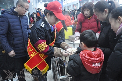 2019年2月10日,是農(nóng)歷已亥年的正月初六。由于春節(jié)假期即將結(jié)束,大量鄉(xiāng)親踏上了返崗的旅途。南充汽車客運站候車大廳內(nèi)人頭攢動,熙熙攘攘。上午9:00時左右,正是客流高峰,只見兩名身穿客運站工作制服、肩披“南充汽車客運站匡紅艷愛心班”綬帶,頭戴小紅帽的年輕站務(wù)員,推著手推車。她們就是車站“匡紅艷愛心班”第二屆班長胡燕和成員李莉,一邊慢慢行走,一邊說道:“各位旅客大家好,今天是大年初六,你們就要離開家鄉(xiāng)遠行了。我們南充汽車客運站專門為大家準(zhǔn)備了水餃,給大家餞行,有需要的請告訴我們! 一對旅客夫婦主動詢問道:“好多錢一碗?”胡燕說:“不要錢,是我們車站免費給大家提供的。”“你們車站還這么好哇,那給我們來兩碗嘛,我們從鄉(xiāng)下來,還真的沒吃早飯!焙嗪屠罾?qū)赏胨?/span>熱情地送到了這對旅客夫婦手中。旅客夫婦說:“謝謝你們,沒想到在車站又嘗到了年味! 見此情景,一些旅客陸續(xù)聚攏到推車跟前,“阿姨!我要吃餃子。”一名小朋友走近推車喊道。“要得,阿姨給你舀!焙嗪屠罾蚰贸鲲埡锌曜樱ê靡煌胗忠煌耄偷叫枰穆每褪种。 “大哥,你到哪里去?”胡燕一邊忙著端水餃,一邊問一位前來的旅客。“我到貴陽,明天就要上班了,路程長,今天我想可能要餓肚子,沒想到你們還準(zhǔn)備了水餃,你們車站真好,給我留下了今年春節(jié)家鄉(xiāng)的美好印象,謝謝你們!”“不用謝,這是我們應(yīng)該做的。我們車站每年初六都要為大家煮水餃,給大家提供方便,祝你旅途愉快!焙嗷卮鸬!澳銈兿氲弥艿,謝謝你們!”旅客吃著熱騰騰的水餃連聲說道。 整整一個上午,胡燕和李莉送了一車又一車,直至將40斤水餃全部送完。她們看見旅客舒心地坐在候車大廳里,滋滋有味地吃著水餃,十分愉快開心。 春節(jié)期間,南充汽車客運站深入開展“情滿旅途”活動,全力做好農(nóng)民工返鄉(xiāng)返崗關(guān)愛服務(wù)工作,熱心為旅客送開水、做好事、猜謎語、搞游園等。其中,大年初一送湯圓和大年初六送水餃,是一直堅持開展的兩項愛心志愿服務(wù)活動,自2010年春運開始,連續(xù)九年堅持不懈,受到了廣大旅客及社會各界的廣泛好評。一些旅客紛紛拍照留影,在網(wǎng)絡(luò)媒體上自發(fā)傳播,產(chǎn)生了良好的社會影響。 (李曉光)