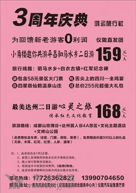 在客運(yùn)萎縮中,儀隴分公司經(jīng)過兩年多的努力,旅游產(chǎn)業(yè)漸漸發(fā)展了起來。目前疫情還未完全過去,對于長線旅游,很多人都不作考慮,鑒于此,只能大力發(fā)展短線旅游。最近,鴻運(yùn)旅行社儀隴分社新推出平昌、達(dá)州兩條旅游線路,主要針對50至80歲的人群。 為了爭取更多的客戶,為公司創(chuàng)收,鴻運(yùn)旅行社儀隴分社在金城、馬鞍、復(fù)興三鎮(zhèn)進(jìn)行廣泛宣傳的基礎(chǔ)上,6月5日,分管旅游副經(jīng)理何智勇又帶領(lǐng)分公司5名員工深入到縣城內(nèi)大街小巷,到各個(gè)菜市場和人員聚集地去宣傳推介旅游產(chǎn)品,發(fā)傳單、深推廣、詳介紹、拉客戶。他們頂著烈日,冒著酷暑,不厭其煩的介紹旅游線路,從青年、中年到老年,不放過任何一個(gè)可能成為旅游客戶的機(jī)會(huì),努力為提高企業(yè)效益做出自己的貢獻(xiàn)。 經(jīng)儀隴分社全體員工共同努力,積極宣傳造勢,先后共發(fā)放平昌、達(dá)州兩條旅游線路宣傳資料達(dá)8000余份,組團(tuán)5次,發(fā)團(tuán)220余人次,受到游客們的喜愛。 (林雅琪)