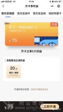 南運集團定制客運南充至閬中、南充至金城、南充至南部線路會員卡重磅來襲,還有南運出行平臺通用會員卡,讓你出行超省,更詳細(xì)的活動規(guī)則,快隨小編一起往下看。 2021年的第一份出行特惠! 為給乘客出行提供優(yōu)惠福利,由南運出行打造的定制客運付費會員產(chǎn)品“南充⇌南部隨行卡”“南充⇌閬中隨行卡”“南充⇌金城隨行卡”于1月1日正式上線! 什么是“隨行卡”?簡單來說,就是可以一次購買享多次出行優(yōu)惠。優(yōu)惠力度有多大?購卡后購票5折優(yōu)惠!可享5次!開卡最高可省150元! 活動時間 2021年1月1日—2021年1月31日(31天) 數(shù)量有限,先到先得! 活動規(guī)則 1.您選擇所需的定制客運線路會員卡并完成支付后,系統(tǒng)將自動派發(fā)卡中包含的所有優(yōu)惠券,您可使用優(yōu)惠券去抵扣應(yīng)付訂單金額; 2.優(yōu)惠券可使用的渠道為:南運出行平臺微信小程序; 3.優(yōu)惠券自到賬后30天有效,每天限用1張優(yōu)惠券,請盡快使用; 4.定制客運線路會員卡僅限南運出行指定城際線路可用; 5.優(yōu)惠券僅可“會員卡購買本人”(支付活動的登陸賬號中,常用乘客中的本人)使用,不可替別人購買或購買后將票轉(zhuǎn)售給他人。 2021年的第二份出行特惠! 由南運出行打造的南運暢行卡也將于1月1日正式上線!特別一說,南運暢行卡適用于南運出行平臺所有定制客運線路(南部至閬中線路除外)! 活動時間 2021年1月1日-2021年1月31日(31天) 數(shù)量有限,先到先得 活動規(guī)則 1.您選擇所需的南運暢行會員卡并完成支付后,系統(tǒng)將自動派發(fā)卡中包含的所有優(yōu)惠券,您可使用優(yōu)惠券去抵扣應(yīng)付訂單金額; 2.優(yōu)惠券可使用的渠道為:南運出行平臺微信小程序; 3.優(yōu)惠券自到賬后30天有效,每天限用1張優(yōu)惠券,請盡快使用; 4.南運暢行卡適用于南運出行平臺所有定制客運線路(南部至閬中線路除外)。 5.優(yōu)惠券僅可“會員卡購買本人”(支付活動的登陸賬號中,常用乘客中的本人)使用,不可替別人購買或購買后將票轉(zhuǎn)售給他人。 活動流程 1.識別下方二維碼進入“南運出行”小程序