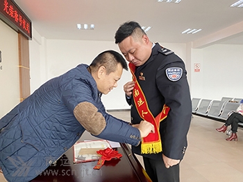南運集團黨委副書記、工會主席鮮志強為蘇城佩戴“見義勇為南運人”綬帶并頒發(fā)《榮譽證書》及獎金。