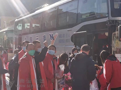 9月5日南運集團南部分公司接送55名南部縣醫(yī)務人員緊急奔赴阿壩州黑水縣抗擊疫情。