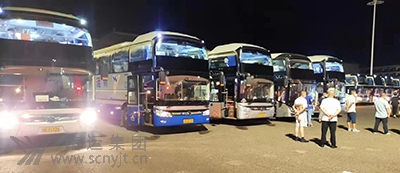 8月27日《今日順慶》以《四川南充汽車運輸(集團)有限公司順慶分公司(汽車41隊):抗疫轉運“疫”路順風》為題,同日,《南充日報》以《“抗擊疫情,義不容辭”交通應急保障駕駛員集體簽下〈決心書〉》為題對順慶分公司和南充市城北汽車客運站抗疫定制客運確保暢通的典型事跡進行了宣傳報道。 三、不懼風險挑戰(zhàn) 馳援多地抗疫 在廣安、南充、成都等地疫情多點頻發(fā)的嚴峻形勢下,南運集團堅決按照上級防疫指揮部和交通行業(yè)主管部門指令,大力發(fā)揚“一方有難 八方支援”的大愛無疆精神,分別從所屬的10個有車單位,總計抽調2382臺次客運車輛,安全運送59235人次醫(yī)務人員支援市外多地和市內三區(qū)四縣抗擊疫情以及轉運隔離人員與新疆、西藏返鄉(xiāng)風險人員,累計安全行駛33.29萬公里。 (一)南運集團共產黨員先鋒隊圓滿完成赴鄰抗疫應急運輸保障任務。 5月17日至5月24日,南運集團共產黨員先鋒隊41臺客運車輛、2臺后勤保障車,共41名客車駕駛員、12名管理人員,赴廣安鄰水抗擊疫情,連續(xù)奮戰(zhàn)八天,往返于鄰水至廣安棗山、岳池、武勝,南充,遂寧安居、射洪,蒼溪,渠縣,綿陽安州、三臺之間,運距最近的是鄰水至廣安棗山往返一趟90余公里,運距最遠的是鄰水至綿陽安州往返一趟720余公里,累計完成抗疫運輸96趟次,安全運送抗疫和涉疫人員2828人次,累計安全行駛4.4萬公里。為鄰水戰(zhàn)勝疫情作出了積極貢獻,受到廣安鄰水當?shù)攸h委政府和市縣交通運輸局及人民群眾的高度贊揚和衷心感謝! 1.召之即來 冒雨出征 5月17日下午5:30,南運集團接到市交通運輸局赴廣安鄰水抗疫緊急運輸指令后,王董事長立即召集相關領導開會,決定將此任務交給快車客運分公司黨員先鋒隊,親自坐鎮(zhèn)指揮緊急出征有關事宜。 當晚7:50,快車客運分公司黨支部書記兼副經理龐林領隊,帶領21名政治過硬、技術過硬的黨員先鋒號駕駛員和21輛南運大巴,組成南運集團共產黨員先鋒隊,大家都還未來得及吃晚飯,就緊急集結在南充汽車客運站,冒雨出征,星夜馳援廣安鄰水抗擊疫情。這是全省第一支最早從外地到達鄰水疫區(qū)的專業(yè)運輸保障車隊。