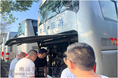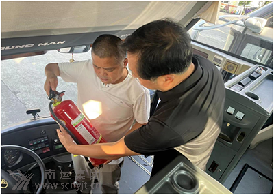 高速客運(yùn)分公司安全生產(chǎn)第一責(zé)任人岳軍帶隊(duì)檢查車(chē)輛發(fā)動(dòng)機(jī)及隨車(chē)滅火器