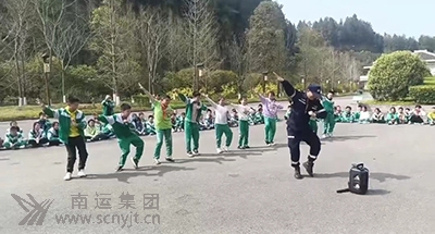 蓬安分公司客運(yùn)科副科長(zhǎng)張偉帶領(lǐng)同學(xué)們跳《科目三》舞蹈