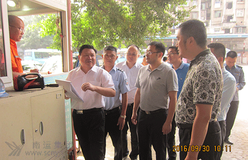 高坪區(qū)委書(shū)記韓倫紅(左五)檢查高坪汽車站安全  高坪區(qū)委書(shū)記韓倫紅(左二)在高坪汽車站安全例檢處檢查