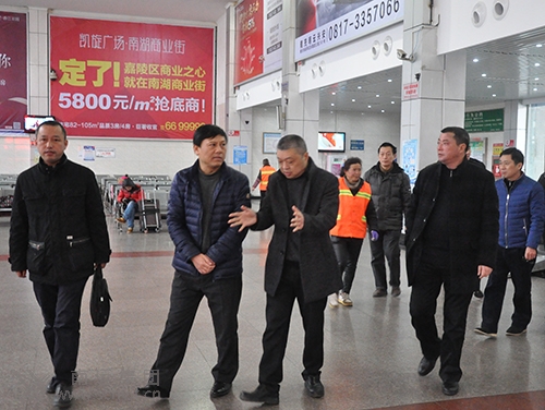 省運管局副局長張洪(左二)在車站候車廳檢查