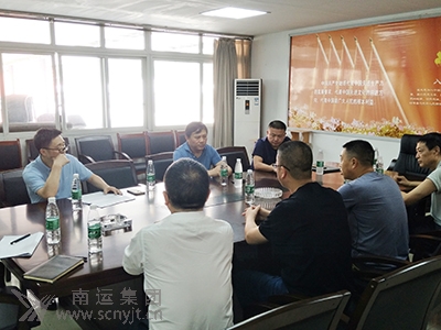 省運(yùn)管局副局長(zhǎng)張洪(左二)聽(tīng)取儀隴分公司經(jīng)理林勁松關(guān)于汛期安全生產(chǎn)工作落實(shí)情況的匯報(bào)。