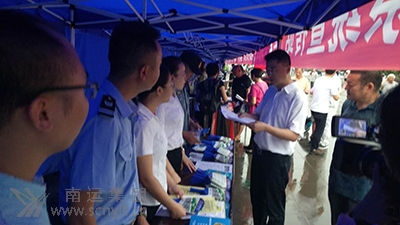 西充縣委常委、常務(wù)副縣長龐亮(右二)到現(xiàn)場查看宣傳資料