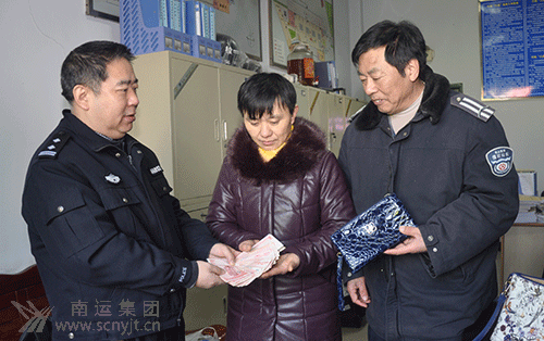 “太感謝你們車站的同志了,我這一年辛辛苦苦打工掙來的錢終于找到了,這下我可以高高興興的回家過年了” 。這一幕發(fā)生在2017年1月12日南充汽車客運站保衛(wèi)科辦公室里。 1月11日上午八時左右,車站值班站長黨洪金正巡視到站前廣場出租車下客處,發(fā)現(xiàn)一輛出租車停放在出租車入口處,堵塞了車輛通道但是車上卻沒有駕駛員。黨站長立即大聲詢問出租車駕駛員到哪里去了。不一會兒就看見一個男的手拿一個花提包急匆匆的從車站候車大廳里面跑了出來,坐上了出租車駕駛座。黨站長上前詢問是怎么回事,駕駛員回答到有一個坐出租車的人下車時遺漏了這個花提包,他發(fā)現(xiàn)后立即進(jìn)入候車大廳尋找卻沒有尋找到坐車的旅客,正焦急不知道該怎么辦,黨站長了解情況以后主動承擔(dān)起尋找旅客的責(zé)任。黨站長帶著包會同車站派出所副所長何春林警官一起清點了包里的物品,包里竟然有8880元人民幣現(xiàn)金,以及身份證(張明清,女,51歲,儀隴縣義門鄉(xiāng)轉(zhuǎn)包河村五組18號)一張.黨站長和何所長感到此事的緊迫性,旅客在外打工掙點錢不容易,丟失了這么多的錢一定十分的焦急。而且現(xiàn)在已是年終了,為了讓丟包的旅客過上一個快樂、祥和的春節(jié),何副所長立即從身份證上入手,在公安的內(nèi)部網(wǎng)上查找丟包旅客的相關(guān)信息。幾經(jīng)周折終于找到張明清堂哥的聯(lián)系電話,告知其堂哥讓張明清立即到南充汽車客運站保衛(wèi)科來領(lǐng)取丟失的物品。 1月12日上午9時左右張明清在車站保衛(wèi)科見到丟失的物品時,緊緊的握住了黨站長及何副所長的手一個勁的說著“謝謝、謝謝、太感謝了,你們真是好人啊。” (黃明 喬武林)