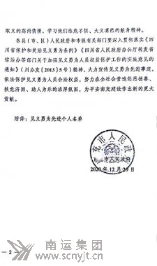 附:南充市人民政府《關(guān)于對姚長海等2名見義勇為先進個人進行獎勵的決定》(南府發(fā)〔2020〕12號)