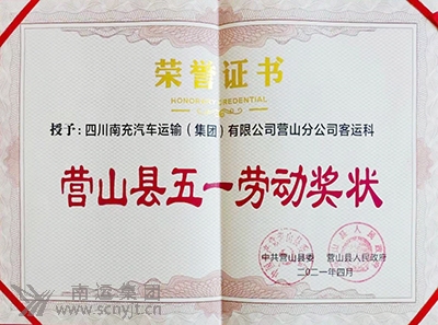 南運(yùn)集團(tuán)營(yíng)山分公司客運(yùn)科榮獲“營(yíng)山縣五一勞動(dòng)獎(jiǎng)狀”