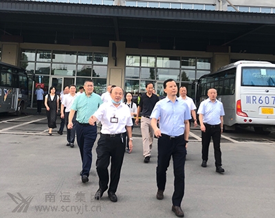 四川省交通運(yùn)輸廳黨組成員、副廳長(zhǎng)寧堅(jiān)(左二)、南充市副市長(zhǎng)陳有波(左一),交通運(yùn)輸部運(yùn)輸服務(wù)司綜合運(yùn)輸處副處長(zhǎng)馮立光(右三)和省交通運(yùn)輸廳運(yùn)輸管理處處長(zhǎng)雷磊一行在營(yíng)山汽車(chē)客運(yùn)站調(diào)研。