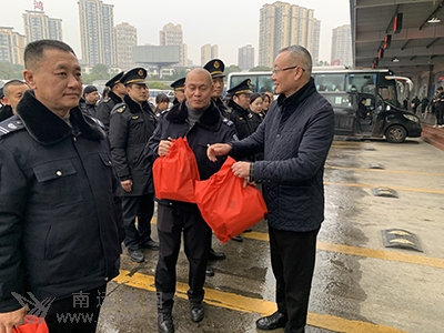 南充市交通運(yùn)輸局一級調(diào)研員張世民向駕駛員贈送春運(yùn)禮包