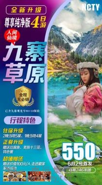 A線:九寨黃龍草原四日游 B線:九寨草原四日游 炎炎夏日,去九寨看最美的水,醉人的歌! 去草原享青草花香,藍天白云! 去黃龍看色彩斑斕,洗滌心靈! 【九寨】九寨每個季節(jié)都有不同之美,夏季九寨清涼避暑,秋季色彩繽紛惹人眼,冬季冰雪覆蓋,美成童話世界;