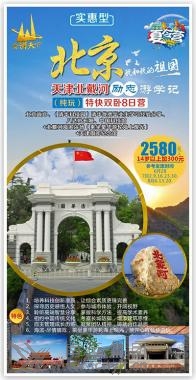 北京故宮、(清華科技園)、(清華優(yōu)秀畢業(yè)生學習經驗分享)、八達嶺長城、中國科技館+北戴河海濱浴場(乘坐豪華游輪海上觀光)+天津周鄧紀念館8日營 特色:1.培養(yǎng)科技創(chuàng)新潛質,讓綜合素質更臻完善。 2.探尋歷史感悟人文,參與城市體驗,開闊視野。 3.聆聽高端智慧分享,掌握科學方法,提高學術素養(yǎng)。 4.相約中國傳統(tǒng)文化,考察長城防御,增添建筑思維。 5.自主管理成長歷練,凝聚團隊精神,鑄就合作品質。 6.海濱-盡情嬉戲,乘坐豪華游輪海上觀光,放開心扉暢快游玩。 夏令營贈送:營服、營帽、旅游胸牌、當?shù)孛刻煲黄康V泉水、集體照一張、陪同人員! D1:成都西—北京西 住:火車上 成都西乘火車T8次08:10分硬臥(途經:德陽、綿陽、江油、廣元)。在夏令營領隊人員的帶領下沿途欣賞中華山水美景,一路歡歌笑語,一路溫馨平安,奔向偉大祖國首都——北京。 D2:北京 。罕本/周邊 12:36 北京西站接站; 13:15 乘車出發(fā),前往天安門廣場; 14:00 游覽天安門廣場(約1小時),這是世界上最大的城市廣場,也是社會主義新中國的象征。 15:00 參觀故宮博物院(約2小時)。故宮是明、清兩代的皇宮,世界現(xiàn)存最大、最完整的古代宮殿建筑群,凝結著歷史的煙云,記載著歲月的滄桑。在這里,巧奪天工的建筑、燦爛文明的見證足以激起每一個華夏兒女的民族自豪感。游覽太和、中和、保和三大殿和乾清宮、坤寧宮、文華殿、御花園等建筑,探訪神秘的皇宮內院歷史遺跡,感受博大精深的中華文化。 18:30 晚餐19:30乘車返回酒店休息。 D3:北京 住:北京/周邊 07:00 營員起床洗漱 07:30 早餐 08:00 前往軍事博物館 08:30 中國人民革命軍事博物館位于北京天安門西面的長安街延長線上,籌建于1959年,是向國慶10周年獻禮的首都十大建筑之一。是中國唯一的大型綜合性軍事歷史博物館,全館有22個陳列廳、2個陳列廣場。軍博收藏34萬多件文物和藏品。其中國家一級文物1793件,大型武器裝備250余件,藝術品1600余件,對外軍事交往中受贈禮品2551件。其中有銅鎏金弩機、鎮(zhèn)遠艦鐵錨、葉挺指揮刀、三八式步槍和解放軍第一輛坦克等重大歷史價值文物。 10:00 走進中國最杰出的大學之一:清華大學科技園區(qū)(約1小時)。參觀清華校科技園區(qū),感受清華文化。政策性閉校外觀。PPT展示,了解清華、北大悠久歷史與校園風光,零距離的接觸清華的優(yōu)秀學子們,感受他們的智慧,感知他們的拼搏,同學們,讓我們用心品味一下大學真正的精髓與文化,把父母口中的"大學"切切實實的感受,清晰一下自己的未來,給自己的人生描繪一幅愿景圖吧,在這里感受中國最高學府的人文魅力。(清華優(yōu)秀畢業(yè)生學習經驗分享)聆聽優(yōu)秀學子交流,(約40分鐘)。 贈送:清華大學博士服照片,清華大學校徽 12:00 午餐 14:30 游覽圓明園通票(約1.5小時)小交通自理,這里是清朝五代皇帝傾心營造的皇家營苑,被世人冠以“萬園之園”、“世界園林的典范”、“東方凡爾賽宮”等諸多美名,身臨其境后才真正了解到圓明園。跟我一起走進圓明園,一起去銘記那段屈辱的歷史! 18:00 晚餐 19:00 返回酒店休息 D4:北京 。罕本/北戴河 03:00 營員起床,洗漱,整理行裝。早餐打包。 05:00 觀看莊嚴的升旗儀式、升旗儀式如遇當日限流,則視為不可抗力因素取消,請周知。 07:30 乘車前往萬里長城。 09:00 前往“燕京八景”之首居庸疊翠,八達嶺長城, “不到長城非好漢”,登上海拔888米最高潮“北八樓”,極目遠眺,腳下的長城依山就勢,蜿蜒起伏,如一條不見首尾的巨龍在綿綿上嶺上翻滾爬到,氣勢磅礴,雄偉壯觀 12:00 午餐。 14:00 參觀【中國科技館】(2小時),科學觀摩體驗—中國科技館。參觀現(xiàn)代科技,古代科技和兒童科技展覽。參與“月球漫步” “模擬飛機”“機器人樂隊”“虛 擬世界”“魔力水車”“航天飛機科學實驗”等豐富有趣,可以增長知識項目,營員動手探索實踐,用雙手感受高科技的無窮魅力,培養(yǎng)科學思想,科學方法和科學精神。 16:00 人文景觀體驗:外觀奧林匹克公園,、鳥巢、水立方外景。是2008年北京奧運會標志性建筑物之一。奧運會后成為北京市民參與體育活動及享受體育娛樂的大型專業(yè)場所,并成為地標性的體育建筑和奧運遺產。 18:30 晚餐。 19:30 返回酒店休息。 D5:北京-北戴河 。罕贝骱 05:00起床、洗漱,用早餐 6:00前往北京火車站根據火車時間或者汽車前往北戴河; 11:00抵達北戴河用午餐 12:30參觀【奧林匹克大道公園】(1小時),欣賞奧運之美。鄧亞萍、王軍霞等十多位奧運冠軍曾親臨這里,感受奧運精神,向奧運冠軍學習。營員們可與前奧委會主席薩馬蘭奇塑像合影留念,精美的浮雕、音樂噴泉、單體雕塑、中國奧運冠軍手足印及簽名、運動場、輪滑場和戶外健身設施等,親身體驗更高,更快,更強的精神。 14:00乘坐豪華游輪【王子號或公主號游船海上觀光】(約40分鐘),乘風破浪飽覽渤海風光,遠眺秦皇島港口及沿海風光。 15:00在【海濱浴場自由活動】(約90分鐘,為保證自身安全只限觀景,不可下海游泳),舉行海邊拔河,堆城堡游戲,拋開書本,盡情享受陽光沙灘海風,組織撿拾貝殼,帶給親人和小伙伴來自大海的問候。 D6:北戴河-天津-成都 住:火車上 5:00起床洗漱用早餐 6:00前往天津; 10:00 參觀【周恩來鄧穎超紀念館】,全國愛國主義教育示范基地、全國廉政教育基地和國